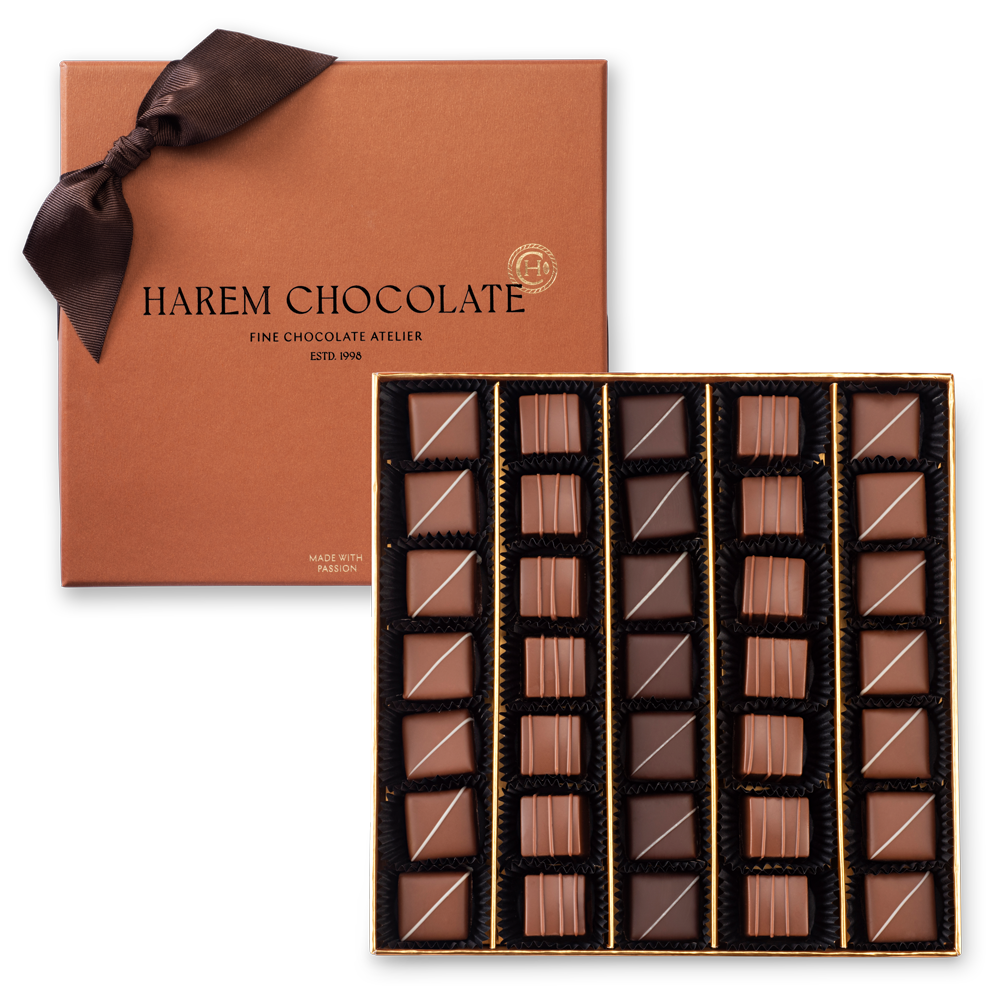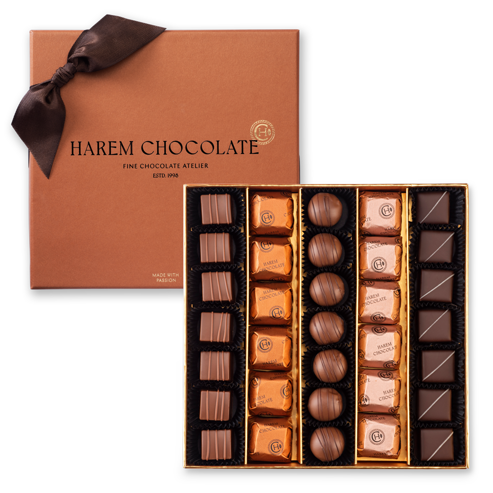 Sanki birlikte olmak için yaratılmış iki mucize tat, Antep fıstığı ve çikolata. Dünyaca ünlü Antep fıstıklarının, doygun sütlü çikolata ile enfes uyumu, Harem Chocolate lezzetleriyle buluşuyor. Fıstıklı çikolata dendiğinde akla gelen Antep Fıstıklı Çikolata, farklı çeşitleriyle Harem Online’da.