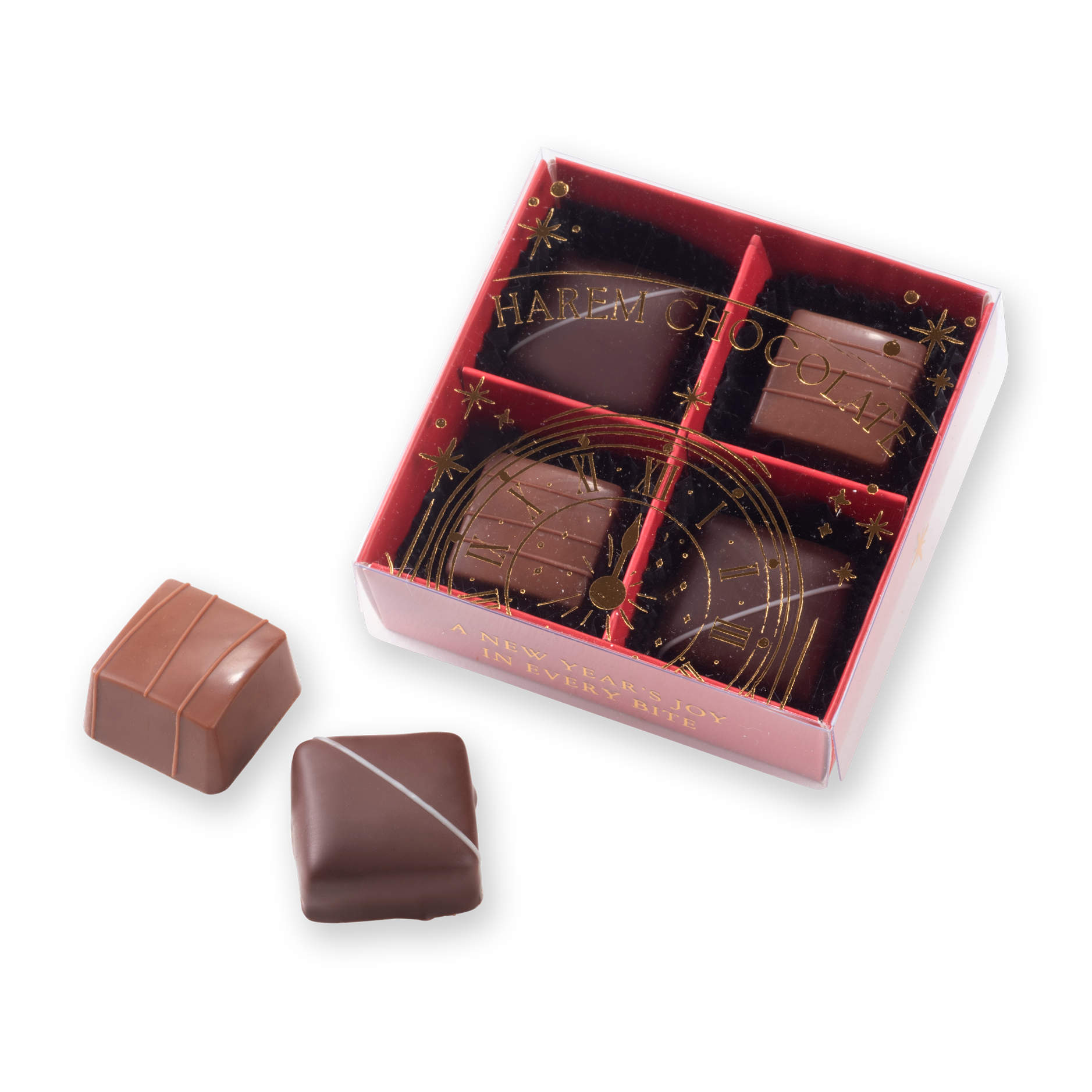 Harem Chocolate’ın el yapımı koleksiyonuna 4'lü Çikolata; sütlü ve bitter kaplı tuzlu karamel, Crunch olmak üzere birbirinden eşsiz lezzetler yer alıyor.
